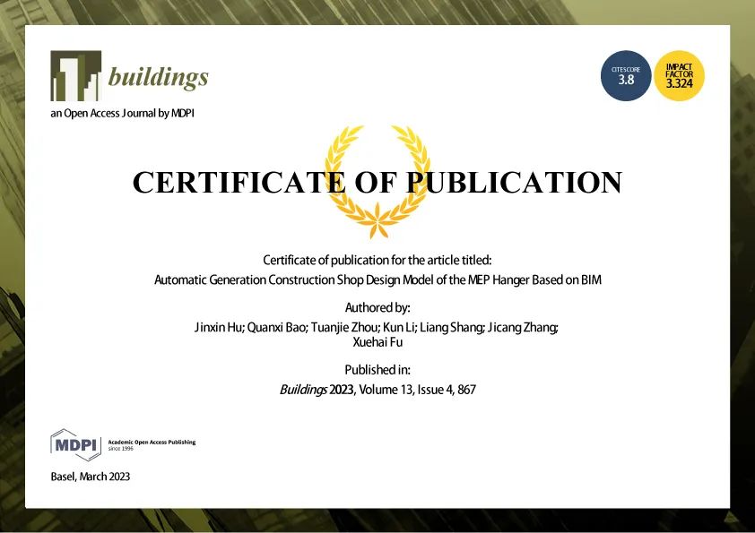 華固三維自動化支吊架設計軟件研發(fā)成果登陸國際建筑期刊Buildings
